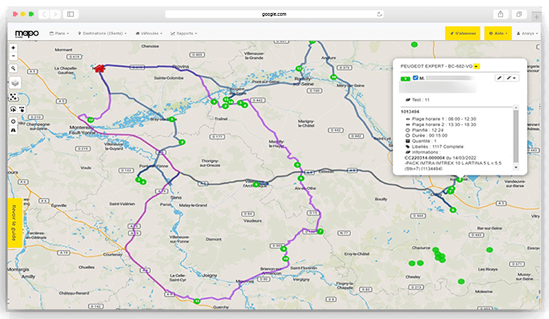 Avec cette nouvelle solution, le traitement de préparation des expéditions est remplacé par la création d’un planning dans l’outil de cartographie Mapo. Les échanges entre Atys et Mapo (récupération des adresses clients et des stocks) permettent de créer une « routine de génération des plans pour structurer les tournées » de ses 3 véhicules à partir de 2 sites logistique.